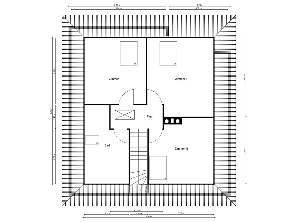 | Badezimmer: | 2, Vollbad m. Fenster – DG + Gäste-WC – EG | ||